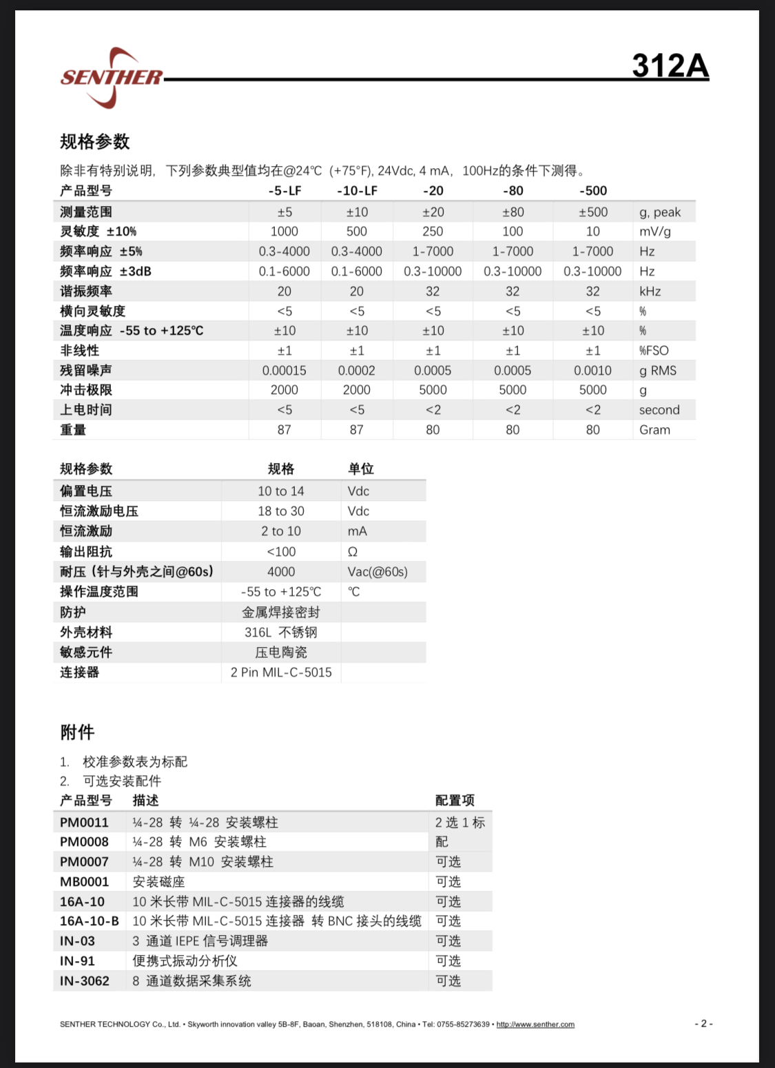产品描述: Senther森瑟科技 振动传感器 312A
